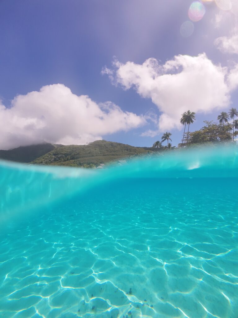 It was unsurprisingly, a very long journey. First an 11 hour flight to LA followed by an eight hour one over the Pacific. Somehow though, it was almost the same day when we arrived. 12 hour time difference is wild. We landed in Tahiti, the main island, where the day was getting underway. We got the ferry straight away, to Moorea, the beautiful, wild island just across the water. And already, we were spotting pods of dolphins and the spouts of whales. Moorea loomed ahead; jagged mountains covered with jungle, and bright blue lagoons fringing the shores.